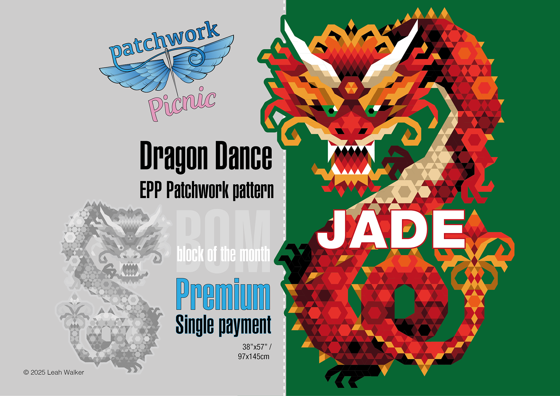 Dragon Dance New EPP Monthly Pattern Starting on June 1st. This will be provided as a block of the month project over 12 months in a choice of two colour combinations.
