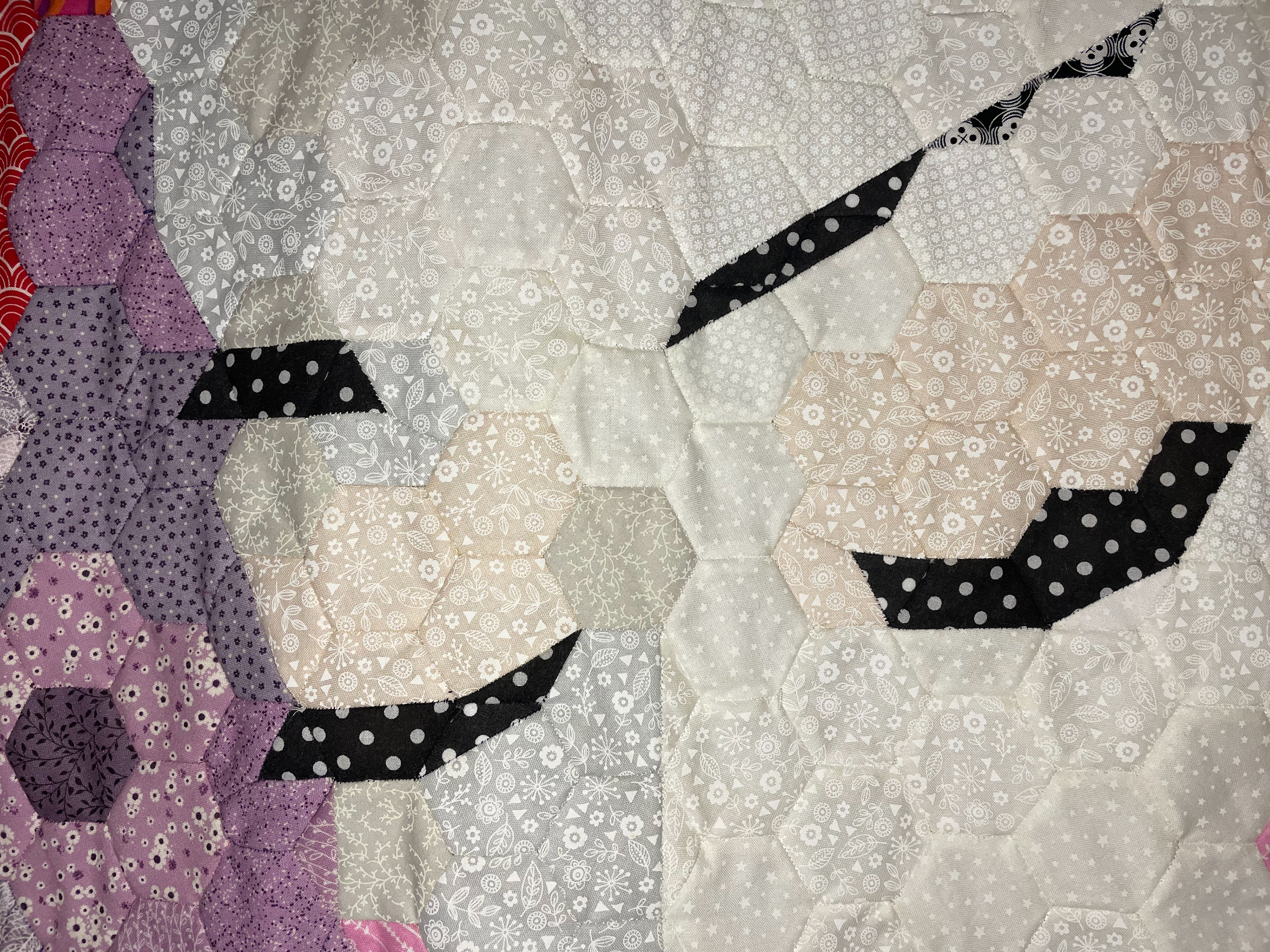 close up of patchwork hexagons
